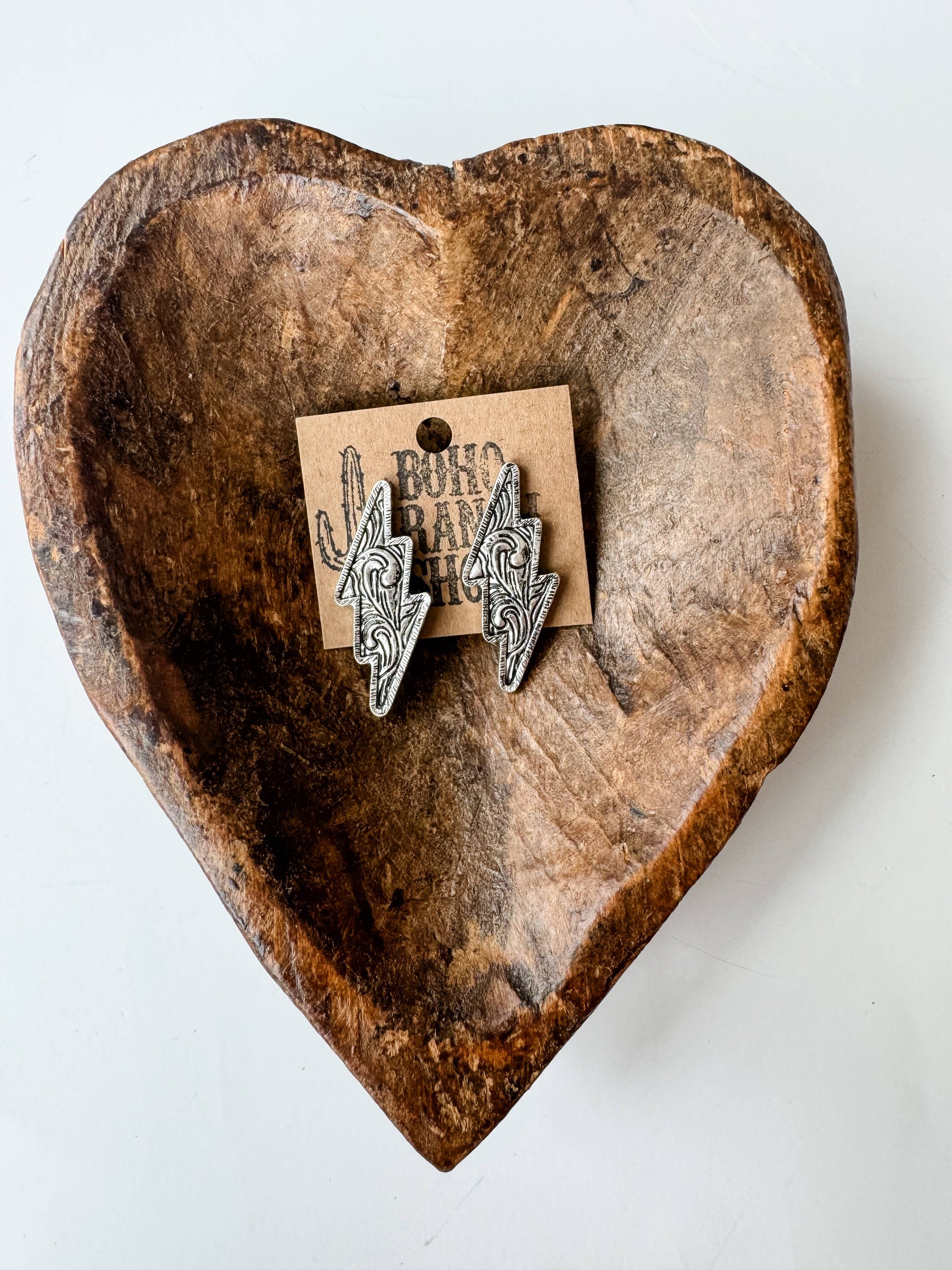 Western Floral Casting Lightning Bolt Thunder Stud Earrings